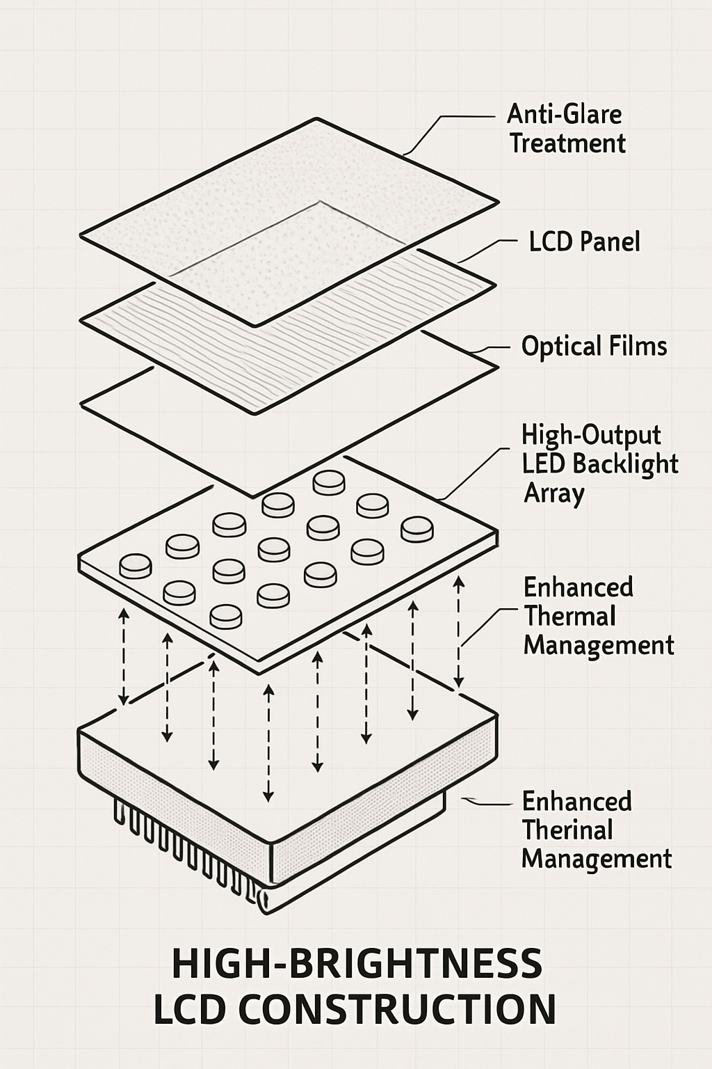 Figure: 2: Exploded view of high-brightness LCD construction showing specialized high-output LED backlight array with enhanced thermal management*