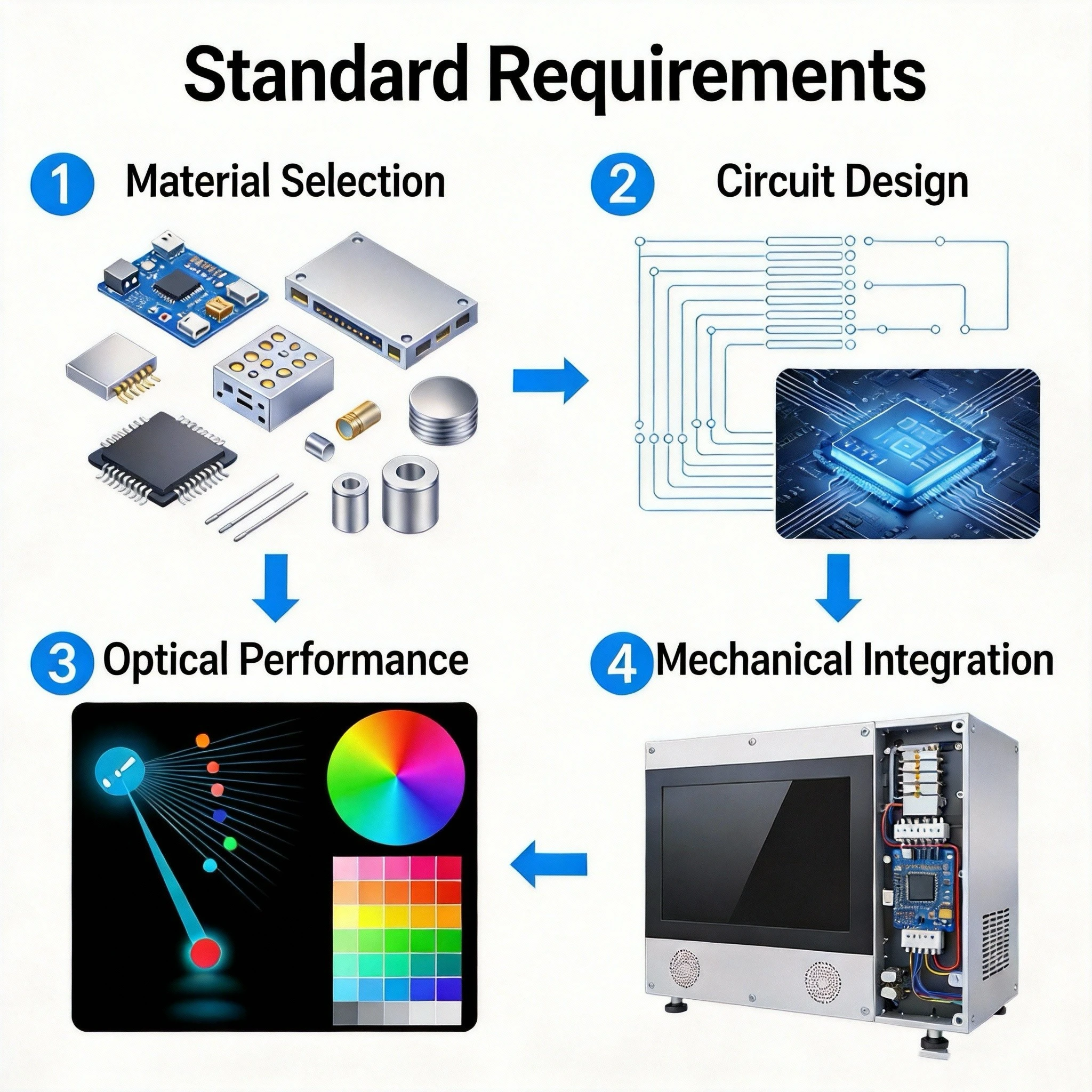 These requirements guide material selection, circuit design, optical performance, and mechanical integration—long before certification testing begins.