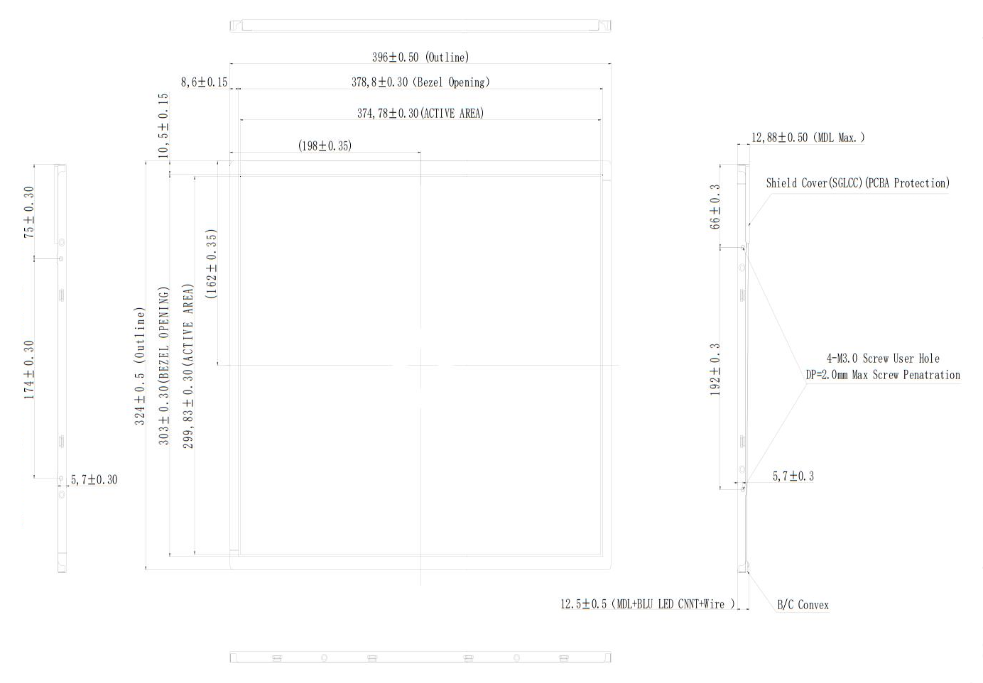 | Outline Size | 396(W) × 324(H) × 13.38(D) mm |