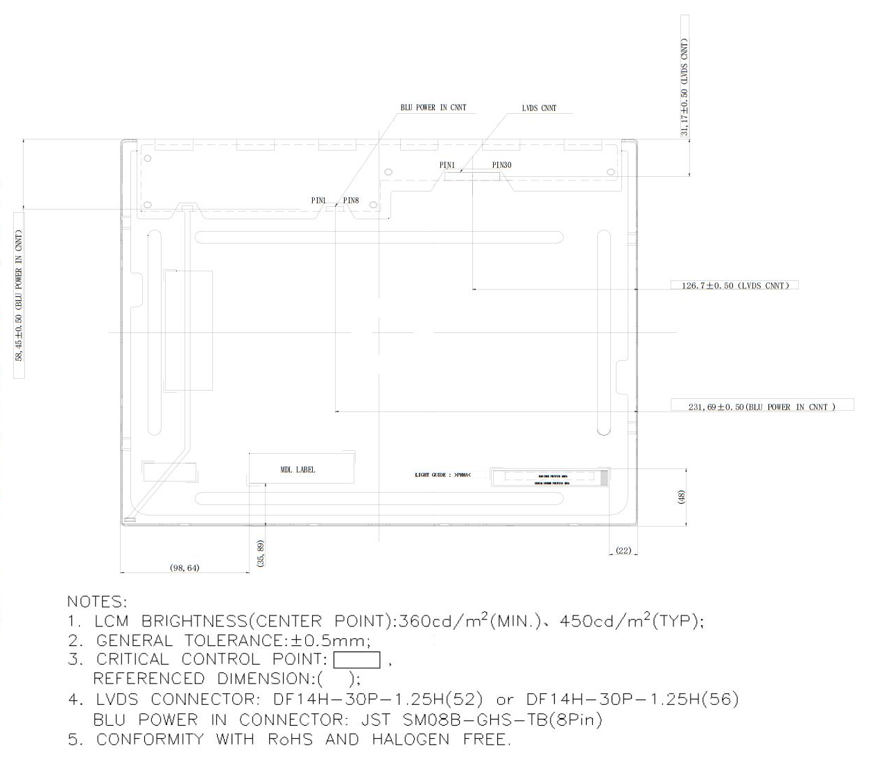 | Panel Type | a-Si TFT-LCD, LCM |